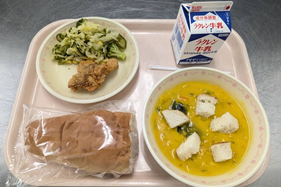給食週間特別メニュー第4弾、何と今日は「イタリア」でした。 「ズッパ・ディ・ズッカ」「ミラノ風チキンカツレツ」「グリーンサラダ」「パン」でした。ズッパ・ディ・ズッカ…イタリアのかぼちゃクリームスー… 続きを読む »給食特別メニュー4(イタリア)