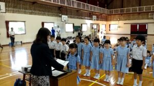 校長先生のお話の後、先日行った全校一斉漢字テストの表彰がありました。(一年生は、ひらがなとかたかなのテストです。)1学期に学習した漢字と、前年度に学習した合計100問が出題されました。満点の子には、校長先生から「校長賞」の賞状が渡されました。どの子も誇らしげな表情でした。第2回目は2月末に実施します。毎日しっかり漢字練習に取り組んでおきましょう!