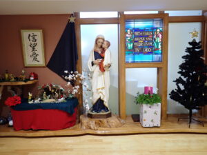 昨日から待降節に入りました。これから、みんなでイエス様をお迎えする準備をしていきます。まずは、玄関にクリスマスツリーを飾り、マリア様の隣に馬小屋を用意しました。これから、子どもたちがイエス様への「7つのプレゼント」をおささげして、心を整えていきます。