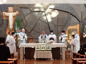 12月8日は、聖マリア学院の創立記念日です。今年で70周年を迎えることになりました。創立記念の御ミサがあり、その後記念式典を行いました。記念式典では、長い間、聖マリア学院のために御尽力いただいたヒルデン神父様から聖マリア学院のことをたくさんお話ししていただきました。