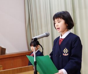 3学期がスタートしました。始業式では、校長先生から、3学期の目標をしっかりもって高みを目指して頑張るようにお話をしていただきました。また、代表の子どもたちも、3学期の目標をはっきりと発表することができました。短い3学期ですが、みんなが本物の「祈る子」「学ぶ子」「助け合う子」になっていくように、日々頑張っていきましょう!