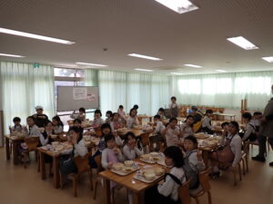 交流給食(2年・4年)2026年2月17日 今日は、2年生と4年生の交流給食でした。いつも以上に、準備も片付けも静かにすることができました。今日のメニューは、温かい卵うどんと浦上そぼろでした。他の学年と一緒で、いつも以上においしくいただきました。