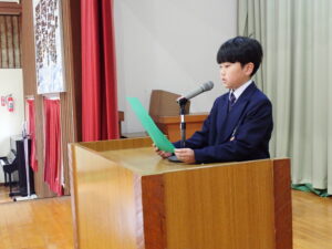 その後、児童代表あいさつでは、3年生と6年生が今年の目標を堂々と発表しました。立派でした。