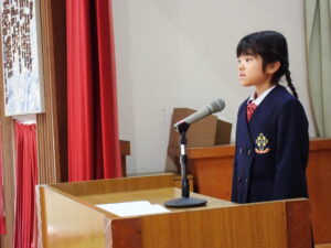 その後、児童代表あいさつでは、3年生と6年生が今年の目標を堂々と発表しました。立派でした。