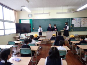 地区集会2026年4月10日 地区集会がありました。各バス、学童、徒歩(お迎え)に分かれて、下校の際の注意事項の確認などを行いました。各班の6年生、5年生が、しっかりと会を進行してくれました。一つ学年が上がって、成長を見せてくれた地区集会でした。