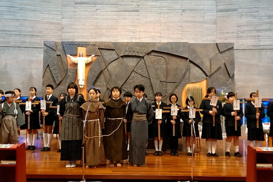 2月5日は、日本26聖人殉教の日です。聖マリア学院小学校でも、日本26聖人殉教者をたたえ、その信仰に倣う恵を願いました。 6年・5年生の子どもたちが、京都から長崎までの殉教の道の劇を演じてくれまし… 続きを読む »26聖人ミサ